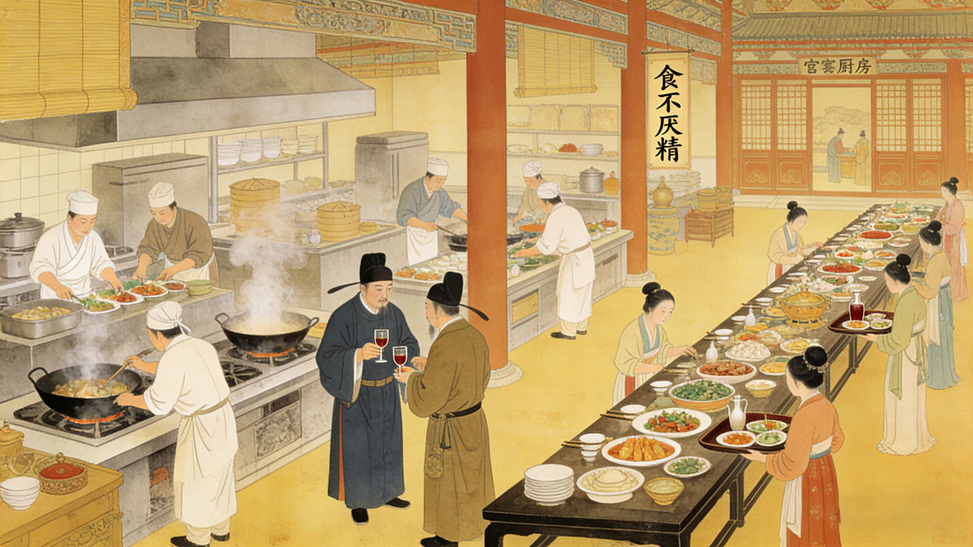 想象一下,当鸿胪寺卿引导着使节完成朝拜,太常寺卿主持完庄严的祭祀后,一场盛大的国宴即将开始。此时,光禄寺的官员们早已将一切准备就绪:从食材的采购、烹饪,到餐具的陈设、酒水的温烫,再到席位的安排,无不体现着“食不厌精,脍不厌细”的极致追求。光禄寺的存在,确保了礼仪活动不仅在精神层面庄严肃穆,在物质层面也同样奢华有序,让参与者在味觉与视觉的双重享受中,感受到皇恩浩荡与国家的富庶。