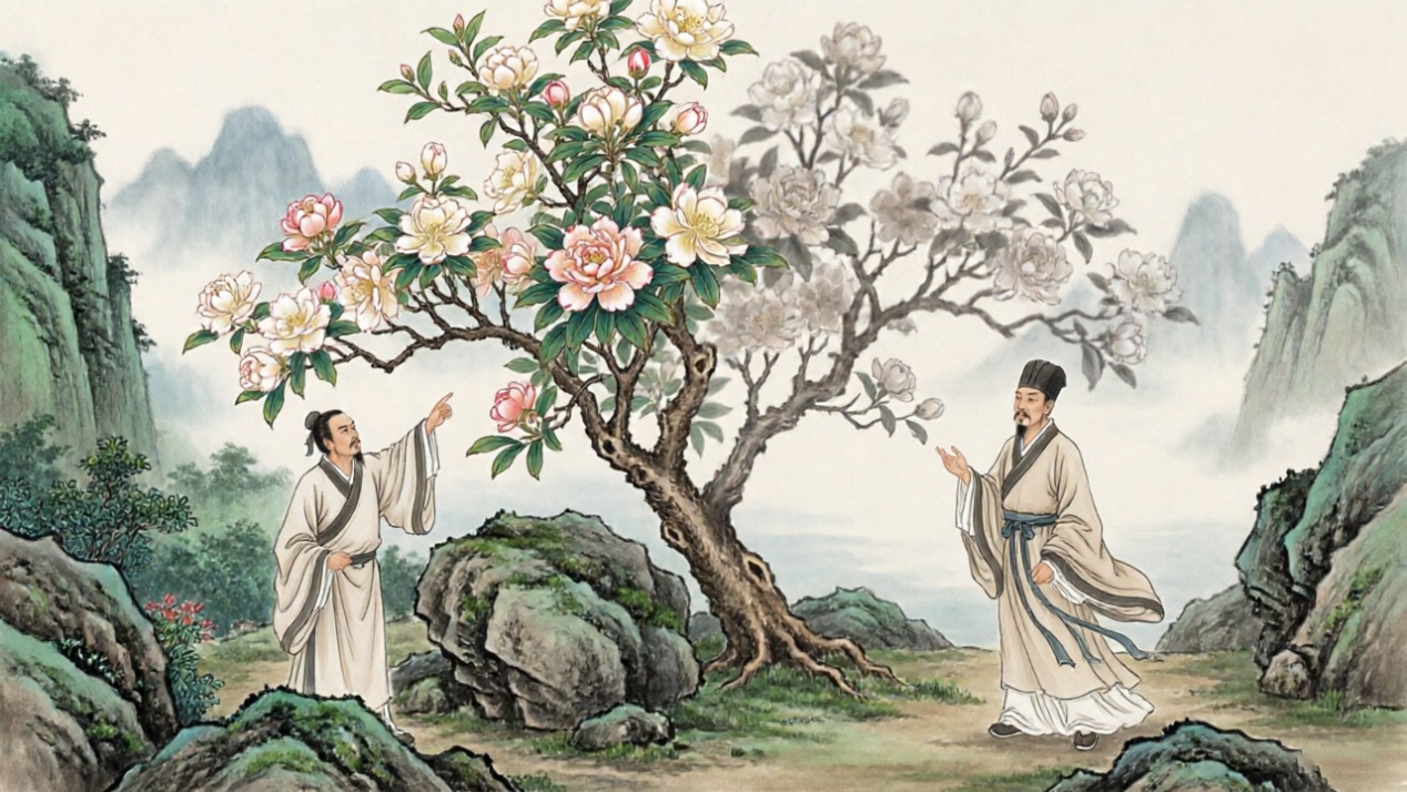 王阳明则以“格竹致疾”与“岩中花树”的故事,道尽心学的精髓。青年时他谨遵朱子教诲,在竹林中静坐格竹,昼夜不息,以求穷尽物理,七日之后心力交瘁、病倒在竹下。这场亲身经历的困惑,让他幡然醒悟:理不在外物,而在自心。后来他游南镇,友人指岩中花树问道:“天下无心外之物,如此花树在深山中自开自落,于我心亦何相关?” 王阳明从容答道:“你未看此花时,此花与汝心同归于寂;你来看此花时,则此花颜色一时明白起来,便知此花不在你的心外。”这则“岩中花树”的对话,以极简的问答,道尽心学“心外无物、心外无理”的核心智慧,成为后世传颂不绝的哲学佳话。