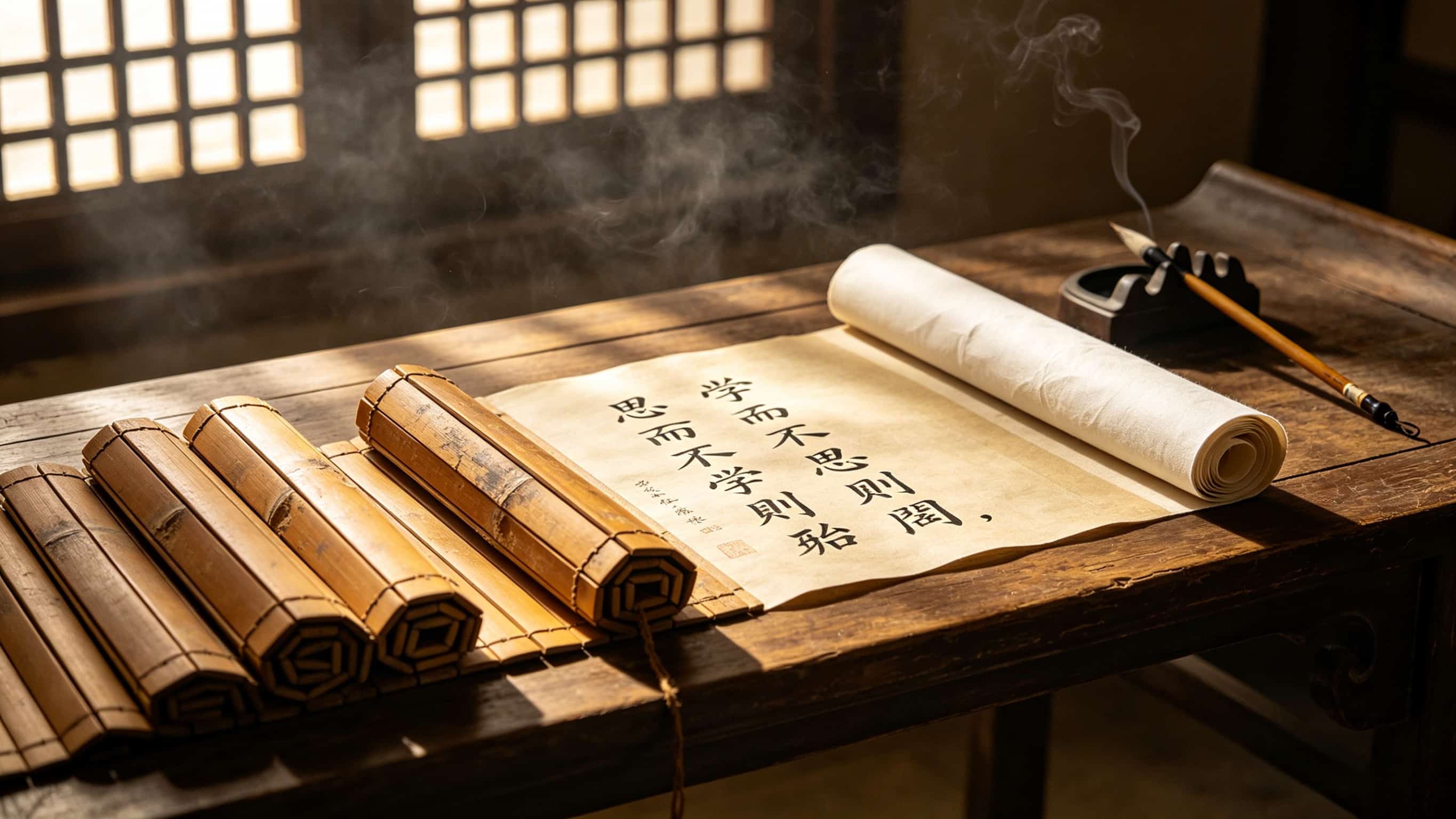 春秋战国时期,社会剧烈变革,士阶层崛起,思想的传播需求迫切呼唤更轻便、廉价的载体。于是,“简牍”登上了历史舞台。简,即竹片;牍,即木片。将竹木加工成片,用绳编连成册,便成了书。《尚书·多士》有云:“惟殷先人,有册有典。”这里的“册”,象形字正如编连的简牍。