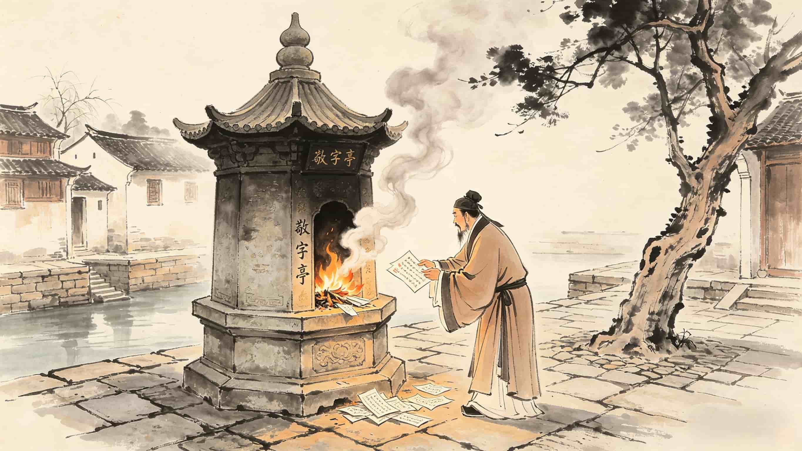 然而,一个有趣的文化现象随之产生:随着纸张变得廉价和普及,文字不再难以获取,但古人对文字的敬畏之心并未因此消减,反而演化出了一种独特的社会习俗——“敬惜字纸”。