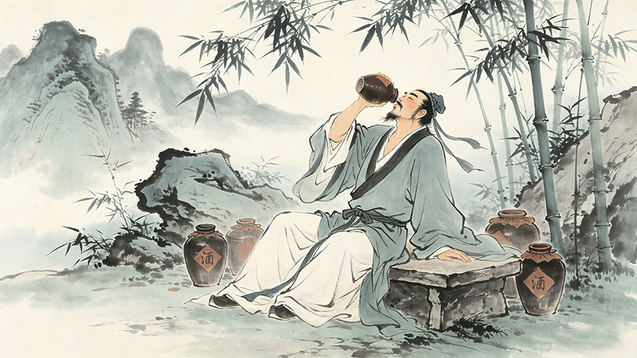 刘伶嗜酒如命、性情疏狂,常乘鹿车携酒而行,令仆人持锄紧随其后,直言“死便埋我”,以极致的放达反抗世俗的束缚与偏见,坚守道家返璞归真的本色。